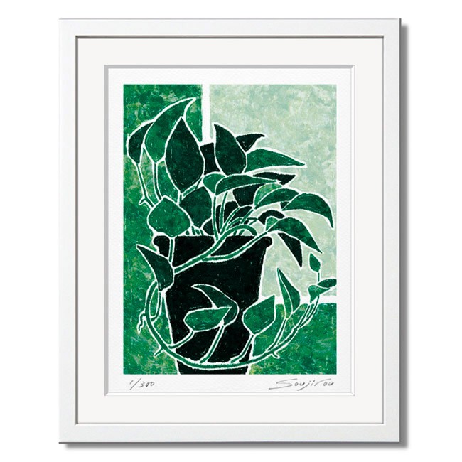 絵画 アート インテリア 壁掛け 版画 おしゃれ ギフト 額入り 小さい絵 観葉植物/絵画 ポトス/藤谷壮仁郎 Soujirou Art