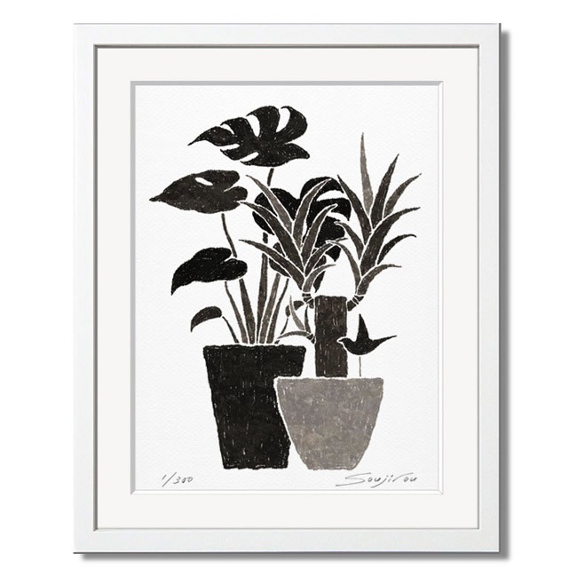絵画 モノクロ インテリア 壁掛け 版画 アート おしゃれ ギフト 額入り 小さい絵/絵画 モンステラとユッカ/藤谷壮仁郎 Soujirou Art