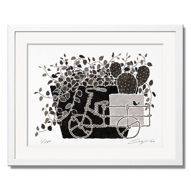絵画 モノクロ インテリア 壁掛け 版画 アート おしゃれ ギフト 額入り 小さい絵/絵画 ワイヤープランツとサボテン/藤谷壮仁郎 Soujirou Art