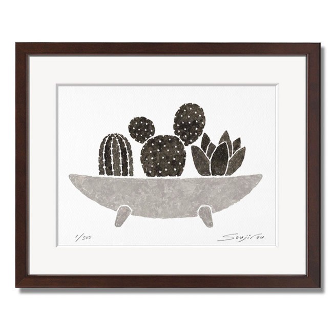 絵画 モノクロ インテリア 壁掛け 版画 アート おしゃれ ギフト 額入り 小さい絵/絵画 多肉植物3種/藤谷壮仁郎 Soujirou Art
