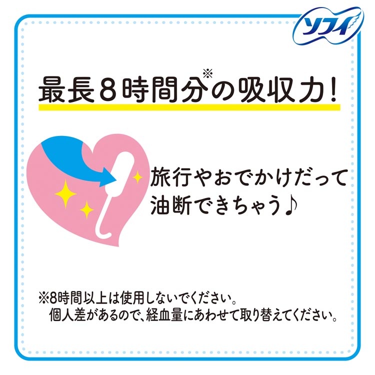 ●最長8時間※までの吸収力だから、生理中でも油断できちゃう♪※8時間以上使用しないで下さい。