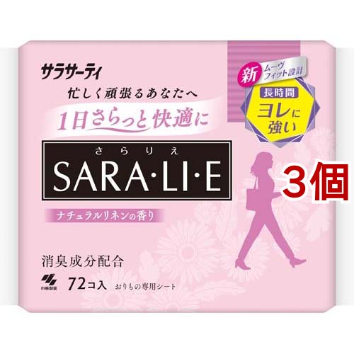サラサーティ サラリエ ナチュラルリネンの香り おりものシート(サラサーティー Sara・li・e sararie saralie)/生理用品/ブランド:サラサーティ/【発売元、製造元、輸入元又は販売元】小林製薬/・単品JAN:4987072038857/【サラサーティ サラリエ ナチュラルリネンの香り おりものシートの商品詳細】●1日さらりと清潔に過ごすためのおりものシート●働く女性の1日の動きに合わせたヨレずれしにくい波型のシート形状とV字型のエンボス加工●ウェットフリーシートでさらさら感が続く●上質なリネンのような肌触り●消臭成分配合●ナチュラルリネンの香り●パンティライナー●おりもの専用シート●おりものシート/cate20039