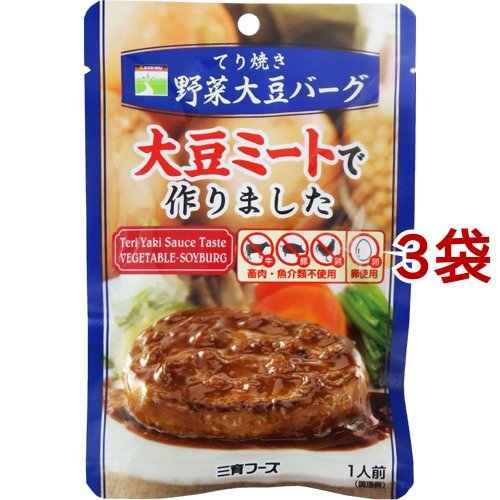 三育フーズ てり焼き野菜大豆バーグ(照り焼き野菜大豆バーグ)/インスタント食品/ブランド:三育フーズ/【発売元、製造元、輸入元又は販売元】三育フーズ/・単品JAN:4974434200441/【三育フーズ てり焼き野菜大豆バーグの商品詳細】●大豆にたっぷりの玉ねぎ・キャベツを加えて作った植物性ハンバーグをしょう油ベースの和風味に仕上げた調理済み食品です。●大豆は、国際的権威の機関FAO、WHOでも「牛乳・卵に匹敵する良質の蛋白である」と言われている蛋白質の優等生です。●動物性油脂、肉エキス、肉フレーバーなどは使用していません。/cate45770