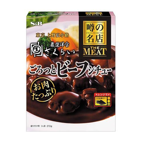 噂の名店THE MEATビーフシチュー/インスタント食品/【発売元、製造元、輸入元又は販売元】エスビー食品/【噂の名店THE MEATビーフシチューの商品詳細】●赤ワインで煮込んだやわらかなビーフに、デミグラスソースが絡む濃厚な味わい。●たっぷり入ったお肉の美味しさを名店の技で最大限に引き出したビーフシチューです。/cate45770
