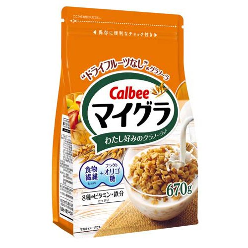 マイグラ/インスタント食品/【発売元、製造元、輸入元又は販売元】カルビー/【マイグラの商品詳細】●オーツ麦と4種の穀物を丁寧に焼き上げたドライフルーツなしのグラノーラ!●グラノーラ生地のほのかな甘さと香ばしさ、ザクザクとした抜群の噛み応えをお楽しみください。/cate45770