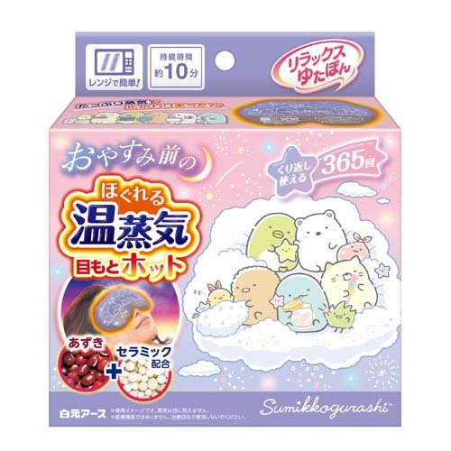 リラックスゆたぽん 目もとホット ほぐれる温蒸気 すみっコぐらし/温熱用品/ブランド:リラックスゆたぽん/【発売元、製造元、輸入元又は販売元】白元アース/【リラックスゆたぽん 目もとホット ほぐれる温蒸気 すみっコぐらしの商品詳細】●電子レンジでチンするだけで心地よい温かさが約10分続きます。 (室温や使用環境により持続時間は異なります。)●あずきとセラミックによるたっぷり蒸気が目もと全体を包み込みます。1日働いた目を奥までじんわり温めることで、気分までほぐれていきます。●ほどよく重みがあり、目もとにフィットするラウンド形状。 ●約365回くり返し使えます。/cate20290