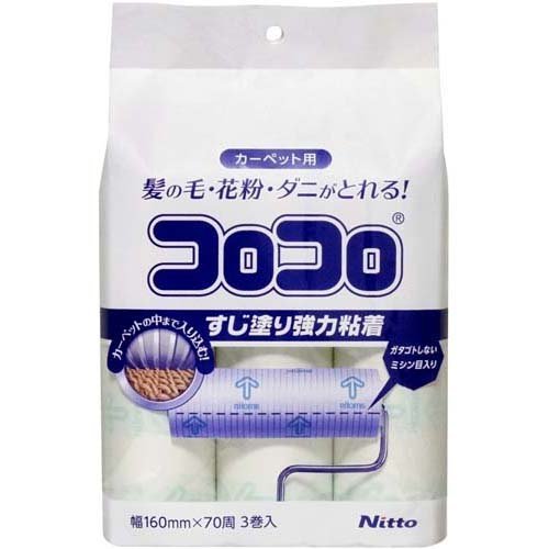 コロコロ スペアテープ 強力筋 70周/住居掃除用品/ブランド:コロコロ ニトムズ/【発売元、製造元、輸入元又は販売元】ニトムズ/【コロコロ スペアテープ 強力筋 70周の商品詳細】●カーペットの髪の毛・花粉・ダニがとれるすじ塗り強力粘着。●繊維の間に入って取るので、布地を傷めにくく、のり残りしにくいように工夫しています。●ガタゴトしないミシン目入できれいに切れます。●転がす方向がわかる矢印印刷。●テープの端は粘着加工していないドライエッジなのでめくりやすく、手が汚れません。/cate70012