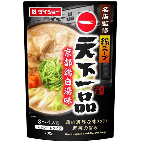 ダイショー 名店監修鍋スープ 天下一品 京都鶏白湯味/調味料/ブランド:ダイショー/( 鍋つゆ ラーメン 名店監修 監修鍋 天下一品 )/【発売元、製造元、輸入元又は販売元】ダイショー/【ダイショー 名店監修鍋スープ 天下一品 京都鶏白湯味の商品詳細】●ラーメンの名店「天下一品」監修のもと、看板商品のラーメン「こってり」を鍋スープで再現しました。●鶏と野菜の旨みに、にんにくのコクを効かせた鍋スープです。/cate45640