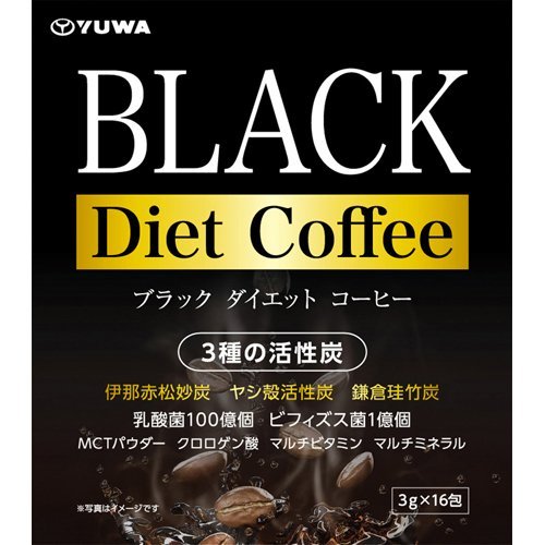 ブラックダイエットコーヒー/ダイエット食品/ブランド:YUWA(ユーワ)/【発売元、製造元、輸入元又は販売元】ユーワ/【ブラックダイエットコーヒーの商品詳細】●ブラジル産のコーヒーに3種の炭、乳酸菌、ビフィズス菌等を配合したインスタントコーヒーです。●伊那赤松妙炭長野県伊那地方の、松茸が生える赤松を丁寧に炭化させた、お腹に優しい木炭。●ヤシ殻活性炭パーム椰子殻を炭化したもので、水分量が少なく高品質な果実炭。●鎌倉珪竹炭美容に欠かせないケイ素を多く含む鎌倉珪竹を、高温で炭化させた高純度の竹炭。●乳酸菌細菌の1種。乳酸を作り人にとって良い働きをするもので、一定の特徴を満たす細菌の総称。●ビフィズス菌人の腸に最も多く住んでいる有用な菌。糖分を分解して乳酸を作るだけでなく酢酸やビタミンB群なども産生する特別な善玉菌。/cate05013