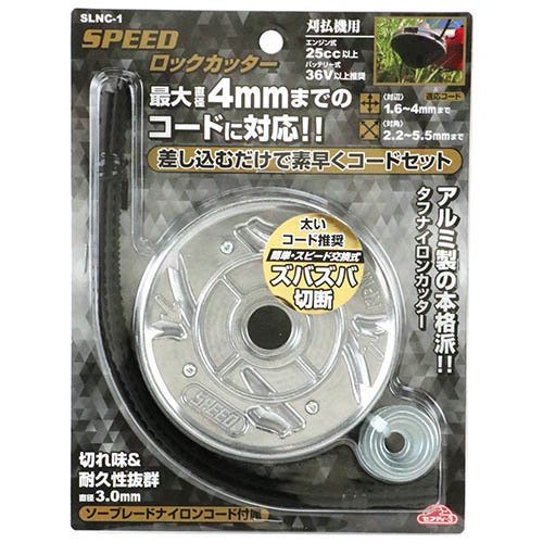 セフティー3 SPEED ロックカッター SLNC-1/ガーデニング/ブランド:セフティー3/【発売元、製造元、輸入元又は販売元】藤原産業/【セフティー3 SPEED ロックカッター SLNC-1の商品詳細】●刈払作業用。●コード交換が差し込むだけのラチェットロック機能を内蔵しています。●直径4mmまでの丸型、四角型等あらゆる形状のコードを使用可能です。●ソーブレードナイロンコード(3mm)が付属しています。/cate30062
