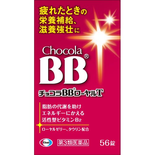 チョコラBBローヤルT(チョコラBBロイヤルT)/滋養強壮・肉体疲労/ブランド:チョコラBBローヤルT/( 疲れ 食欲不振 滋養強壮 ローヤルゼリー タウリン )/【発売元、製造元、輸入元又は販売元】エーザイ/【チョコラBBローヤルTの商品詳細】●忙しい毎日、ストレスの多い環境、知らず知らずに無理がかかっていませんか?●そんなあなたのカラダは、食事からの栄養がスムーズにエネルギーに変換されず、重い・だるいといった疲れの症状があらわれやすくなります。●チョコラBBローヤルTには、脂肪の代謝を助けエネルギーにかえるビタミンB2に加え、ローヤルゼリー、タウリンなど、エネルギーづくりに働く成分を効果的に配合しています。●家事や仕事に忙しく朝から疲れを感じるとき、疲れたカラダに元気をつけたいときなどに服用をおすすめします。/cate15128