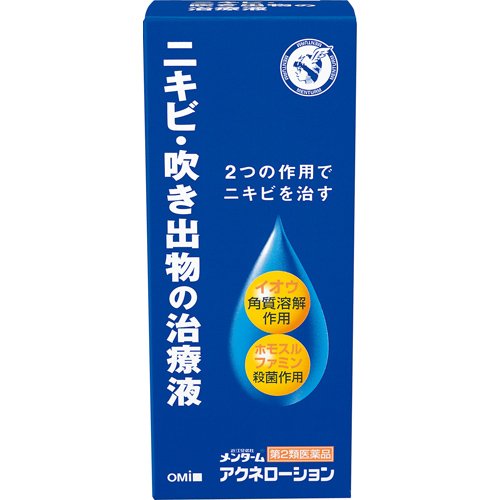 メンターム アクネローション/皮膚・肌荒れ・にきびの薬/ブランド:メンターム/【発売元、製造元、輸入元又は販売元】近江兄弟社/【メンターム アクネローションの商品詳細】●イオウ製剤で治す、ニキビ・吹き出物ローション●毛穴をふさいでしまう、古く厚くなった角質を溶かして、皮脂の分泌を抑制します。●有効成分の「イオウ」がニキビ・吹き出物の原因となるアクネ菌などの細菌に対して有効に働くとともに、古くなった角質層を溶解または剥離します。また「ホモスルファミン」は水にとけて抗菌作用をあらわします。皮脂分泌を抑制、収れんなどの作用のあるローションタイプの治療液です。/cate15143