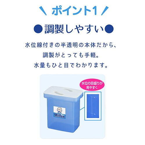 ・透明な容器は光の影響を受け、除菌効果に影響を及ぼす可能性があります。適切な除菌のため、ミルトン専用容器の使用をお勧めします。