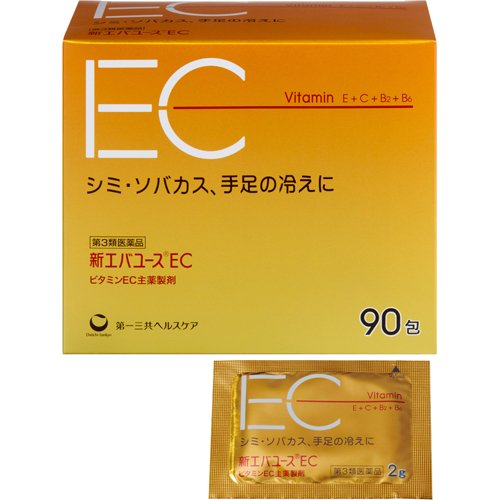 新エバユースEC(エバユース ビタミンEC主薬製剤 顆粒 1歳以上)/ビタミン剤・栄養剤/ブランド:新エバユース/【発売元、製造元、輸入元又は販売元】第一三共ヘルスケア/【新エバユースECの商品詳細】●ビタミンEC主薬製剤●主薬であるビタミンCは、しみの原因となるメラニンの生成をおさえ、コラーゲンの生成を助けるはたらきにより、しみ・そばかすなどの気になるお肌のトラブルを改善します。●天然型ビタミンEを配合していますので、末梢の血行を改善し、新陳代謝をスムーズにして、出来てしまったシミの症状緩和につながります。また、同時に末梢血行を改善しますので、手足の冷えやしびれを緩和します。/cate15133