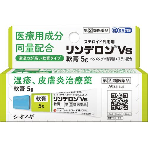 リンデロンVs軟膏/皮膚・肌荒れ・にきびの薬/ブランド:リンデロン/( 湿疹 あせも じんましん )/【発売元、製造元、輸入元又は販売元】シオノギヘルスケア/【リンデロンVs軟膏の商品詳細】●湿疹、皮膚炎などの皮膚トラブルにはステロイド外用剤が有効です。●「ベタメタゾン吉草酸エステル」配合。/cate15143