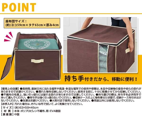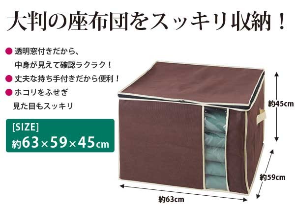 炭入り消臭座布団収納ケース(すみいりしょうしゅうざぶとんしゅうのうけーす)/インテリア 収納/【発売元、製造元、輸入元又は販売元】アイメディア/【炭入り消臭座布団収納ケースの商品詳細】●気になる汗のニオイ・加齢臭を消臭!●透明窓だから中身が見える●持ち手付きだから持ち運びに便利●ホコリを防ぎ、見た目もスッキリ!/cate30401