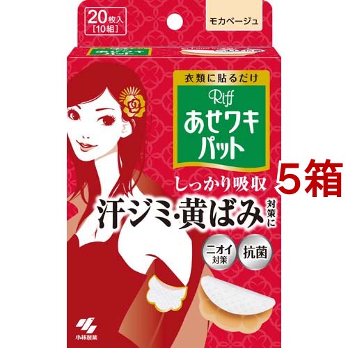 リフ あせワキパット モカベージュ あせジミ防止・防臭シート(Riff 汗ワキパット)/デオドラント用品/ブランド:あせワキパット/【発売元、製造元、輸入元又は販売元】小林製薬/・単品JAN:4987072026281/【リフ あせワキパット モカベージュ あせジミ防止・防臭シートの商品詳細】●衣類に貼って、汗ジミと黄ばみを防ぐ汗吸収シート●表面の汗を残しにくい吸収シート採用で、汗をすばやく引き込んでさらさら感が続く●衣類に貼りやすく動きにフィットするスリット加工で、ヨレ・ズレしにくい●瞬間吸収でさらさら続く(メッシュ素材の吸引シート)●イオン抗菌で汗のニオイを防ぐ●3層構造で、汗をしっかり吸収(1)汗をすばやく引き込む吸引シート(2)汗をたっぷり吸いとる吸水シート(3)汗をもらさないストッパーシート●はがれにくいドット形状のり●ごわごわしない約1mmの薄型シート●モカベージュ:外から目立ちやすい白い衣類にも・あせわきパット・気になる脇汗に・衣類に貼るだけ・しっかり吸収・汗ジミ・黄ばみ対策に・ニオイ対策・抗菌/cate35058