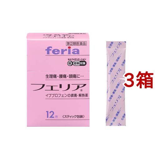 フェリア/頭痛・痛み止め/ブランド:フェリア/【発売元、製造元、輸入元又は販売元】アリナミン製薬株式会社/・単品JAN:49675276/【フェリアの商品詳細】●からだの痛みを過敏にしたり正常体温を上昇させるのは、体内のプロスタグランジンという物質の生成が関与しています。●フェリアは、痛み・発熱の原因となるプロスタグランジンができるのを抑え、痛み・発熱にすぐれた効きめをあらわすイブプロフェンの鎮痛・解熱薬です。●サッと溶ける細粒で、胃腸からの吸収がよく、生理痛・腰痛・頭痛にはやく効きます。●メントールの香りで、のみやすい白色の細粒です。●携帯に便利なスティック包装です。/cate15108