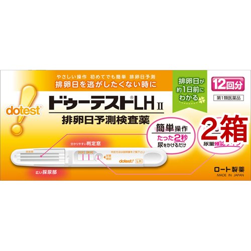 ドゥーテストLHII 排卵予測検査薬 排卵検査薬/検査薬・日本薬局方/ブランド:ドゥーテスト/【発売元、製造元、輸入元又は販売元】ロート製薬/・単品JAN:4987241147205/【ドゥーテストLHII 排卵予測検査薬 排卵検査薬の商品詳細】●排卵日を事前に把握することの重要性妊娠は卵子と精子が互いに生存している時期に出会うことから始まります。女性の体内での精子の生存期間が約2-3日であるのに対し、卵子は排卵後、約24時間しか生存しないといわれています。従って、妊娠を望む上で排卵日を事前に把握することは大切なことです。●排卵日がわかるしくみ黄体形成ホルモン(LH)は、女性ホルモンの一種で、普段から少量分泌されています。生理周期の中頃に短期間ですが、このLHの分泌量が急激に増加します。このLHの大量分泌をLHサージといい、LHサージから約40時間以内に排卵がおこるといわれています。「ドゥーテストLHII」は尿中に分泌されるLHを検出し、LHサージをとらえるための検査薬です。排卵を予測するための方法の一つとして基礎体温が知られていますが、基礎体温と併せて検査を行うと、より排卵日の予測の補助として有用です。こ.../cate15218