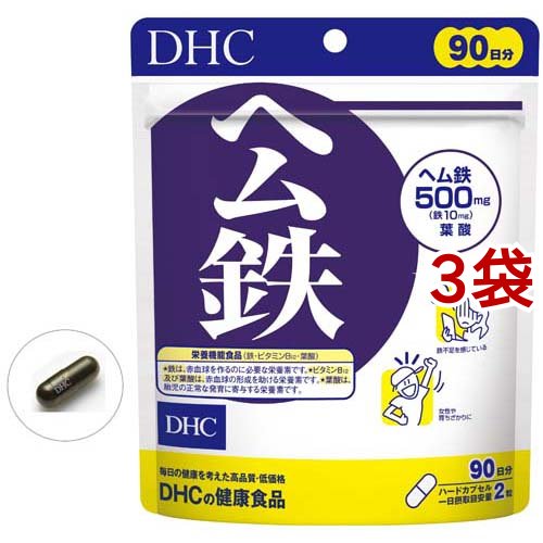 DHC ヘム鉄 90日分/ビューティーサプリメント/ブランド:DHCサプリメント ベ−シック/【発売元、製造元、輸入元又は販売元】DHC 健康食品相談室/・単品JAN:4511413406472/【DHC ヘム鉄 90日分の商品詳細】●鉄分は吸収率が悪く、カルシウムと並び積極的に補給したいミネラルのひとつ。●食品に含まれる鉄には、肉や魚などの動物性食品に多いヘム鉄と、野菜や穀物などに含まれる非ヘム鉄があります。●ヘム鉄を含む動物性食品の方が鉄の吸収率が高いことが一般的に知られています。●「ヘム鉄」は、ヘム鉄にビタミンB12、葉酸をプラス。●とりわけ女性に不足しがちな鉄分を効率よく補えるサプリメントです。●鉄不足が気になる方や、育ちざかりの方におすすめです。/cate05660