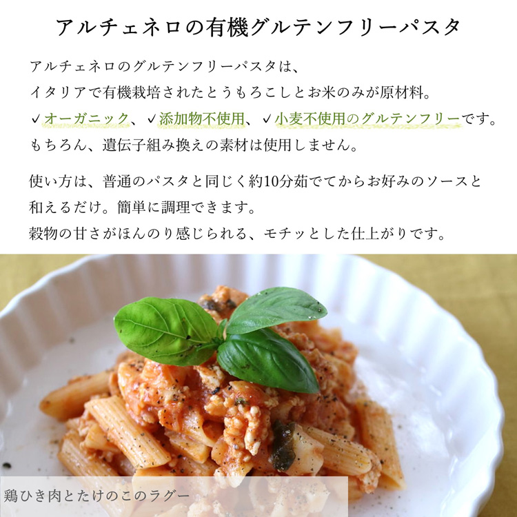 【アルチェネロ 有機グルテンフリー ペンネの商品詳細】