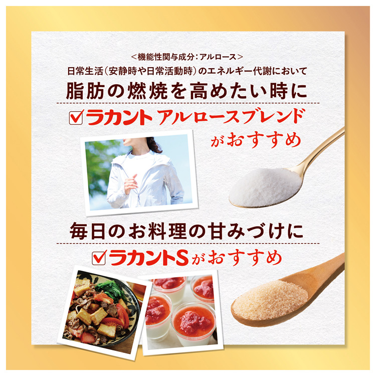 ラカント アルロースブレンド/砂糖・甘味料/ブランド:ラカント/( ラカント アルロース 甘味料 カロリーゼロ )/【発売元、製造元、輸入元又は販売元】サラヤ/・単品JAN:4973512270420/【ラカント アルロースブレンドの商品詳細】●ラカントブランド0kcalの甘味料。●砂糖の代わりに使うだけで、機能性関与成分が日常生活(安静時や日常活動時)のエネルギー代謝において脂肪燃焼効果を高める、食後血糖値の上昇を穏やかにする、Wの機能性を持った植物由来の甘味料です。●メーカー従来品のラカントSより溶けやすく、ジャムやぜんざいを作っても析出(冷めても表面から固まらない)せず、砂糖と同じようにカラメル化ができるといった特徴を持つ、料理好きの方も必見の甘味料です。/cate45983