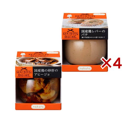 メゾンボワール 2種アソート 国産鶏の砂肝のアヒージョ & 国産鶏レバーのパテ/缶詰類/ブランド:メゾンボワール/【発売元、製造元、輸入元又は販売元】nakato/・単品JAN:4986504003937/【メゾンボワール 2種アソート 国産鶏の砂肝のアヒージョ & 国産鶏レバーのパテの商品詳細】★国産鶏の砂肝のアヒージョ●国産鶏の砂肝と2色のいんげん豆を、にんにくがしっかり効いたアヒージョにしました。★国産鶏レバーのパテ●国産鶏のレバーペーストに鶏もも肉を加え、瀬戸内産の夏みかんでさわやかに仕上げました。/cate45780