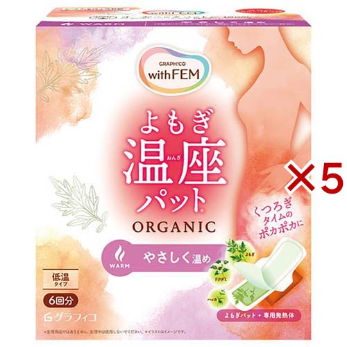 WFよもぎ温座パット オーガニック 低温 6回分/衛生用品/【発売元、製造元、輸入元又は販売元】グラフィコ/・単品JAN:4571169856242/【WFよもぎ温座パット オーガニック 低温 6回分の商品詳細】●女性の冷えにじんわり届く。●韓国の美容健康法「よもぎ蒸し」から着想を得た下腹部や骨盤周りを温めるナプキン型の温熱パット。●下着に貼るだけで簡単に使えます。●パットには韓国産よもぎとドクダミ・ハッカを配合。●トップシートに100%オーガニックコットンを使用しデリケートな肌にも心地よい肌触り。●おだやかな温感で1年中使いやすいやさしく温めタイプ。/cate20270