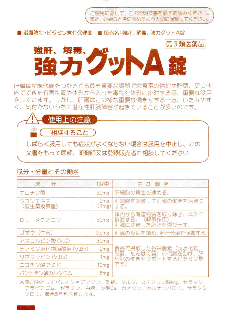 【販売名】強肝、解毒、強力グットA錠