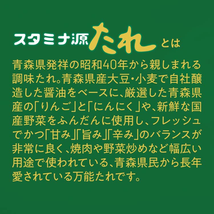 ●スタミナ源たれは青森県発祥の「にんにく」と「りんご」の旨味が詰まった焼肉のたれ。