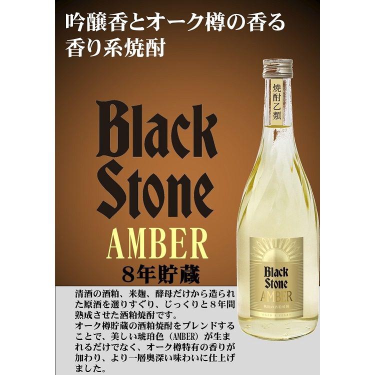 ブラックストーン AMBER 8年貯蔵 41%/アルコール飲料/【発売元、製造元、輸入元又は販売元】秋田県醗酵工業/【ブラックストーン AMBER 8年貯蔵 41%の商品詳細】●吟醸酒を超える吟醸香が特長の酒粕焼酎で、仕込み時期にもこだわり、1年のうち酒粕の品質の一番良い時期だけ製造を行い、品質を追求した原酒を製造しています。●清酒の酒粕、米麹、酵母だけから造られた原酒を選りすぐり、じっくりと8年間熟成させた酒粕焼酎です。●オーク樽貯蔵の酒粕焼酎をブレンドすることで、美しい琥珀色(AMBER)が生まれるだけでなく、オーク樽特有の香りが加わり、より一層奥深い味わいに仕上げました。●ブラックストーンシリーズ「プレミアム品」。●アルコール分:41%/cate60990