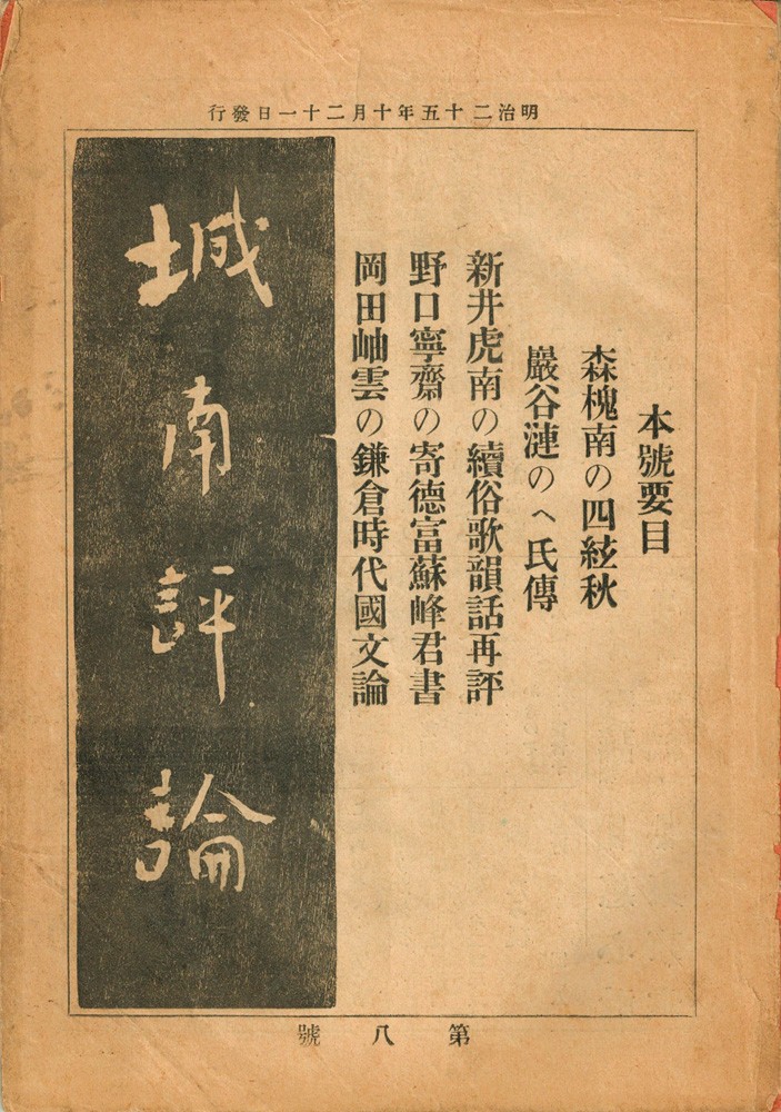 【文芸誌】城南評論 第8号(明治25年刊)