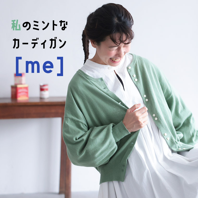 【今なら半額!】[me] 私のミントなカーディガン レディース ニットカーディガン 長袖 バルーンスリーブ クルーネック ハイゲージ/お客様都合での返品交換不可