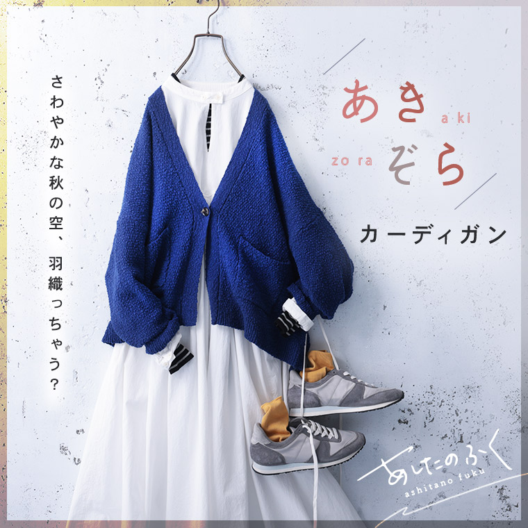 あしたのふく あきぞらカーディガン レディース ニットカーディガン 羽織り 長袖 Vネック 綿 コットン トップス