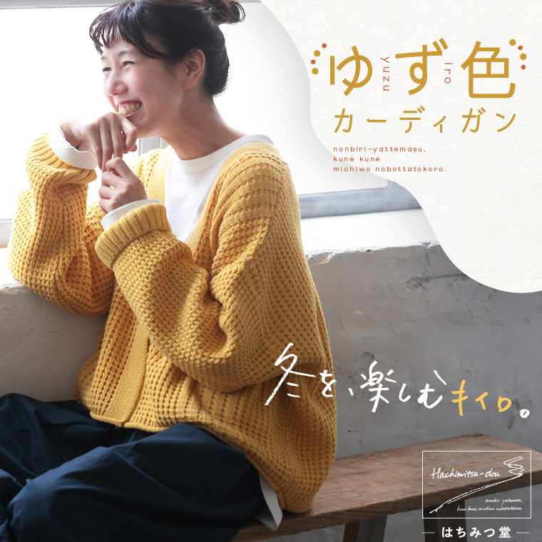 【今なら半額!】はちみつ堂 ゆず色カーディガン レディース ニットカーディガン 長袖 Vネック 透かし編み ローゲージ トップス/お客様都合での返品交換不可