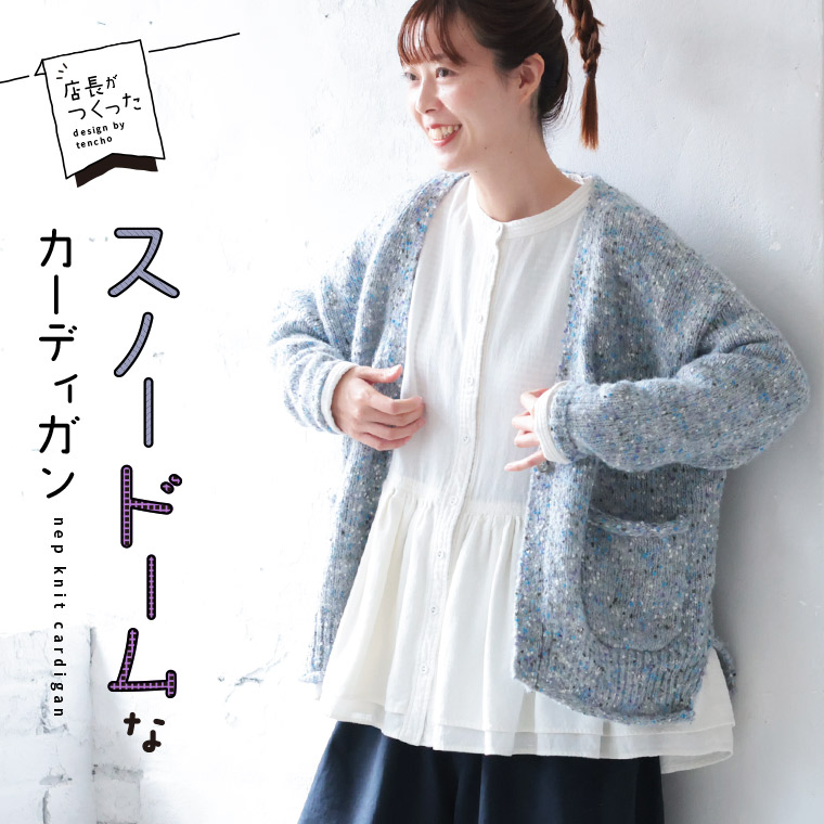 店長がつくった、スノードームなカーディガン レディース ニットカーディガン 羽織り 長袖 Vネック ローゲージ ウール混 毛混 トップス