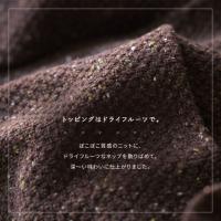 ほどよい甘さと、ほろ苦さ。これぞ「大人の味」ってやつじゃない?ビターなブラウンに包まれたくて、ブラウニーからヒントをもらって作りました。そしてブラウニーのトッピングといえば、ドライフルーツ。ぽこぽこ質感のニットにカラフルなネップを散りばめて、深〜い味わいに仕上がりました。