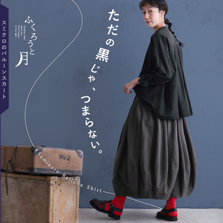 ふくろうと月 スミクロのバルーンスカート レディース ロング フレア コクーン 麻混 リネン混 ボトムス