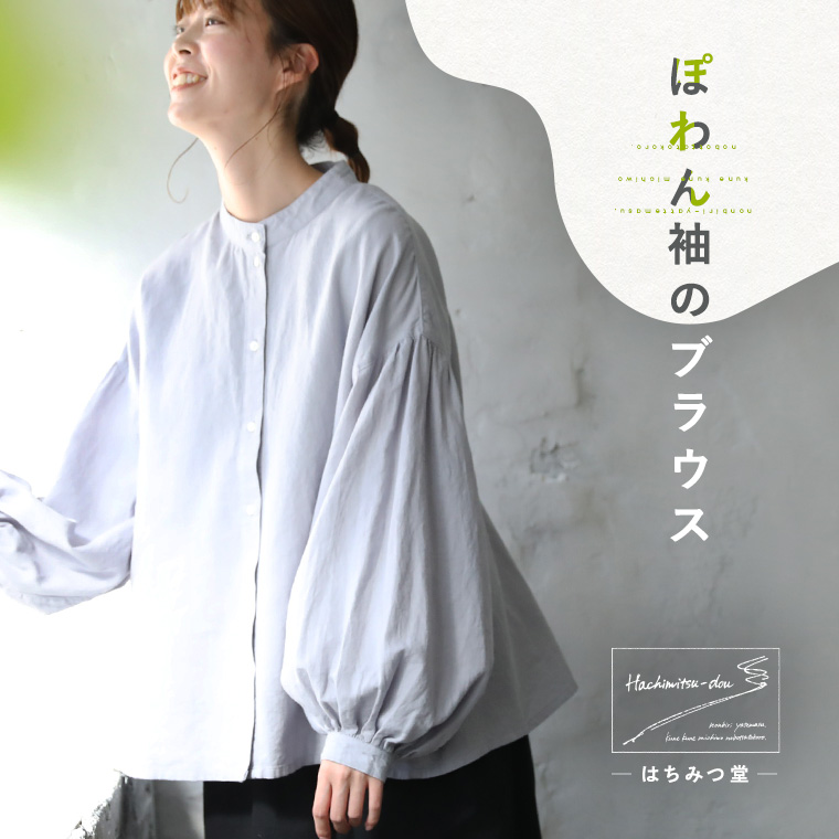 【今なら半額!】はちみつ堂 ぽわん袖のブラウス レディース シャツ 長袖 スタンドカラー バンドカラー バルーンスリーブ/お客様都合での返品交換不可