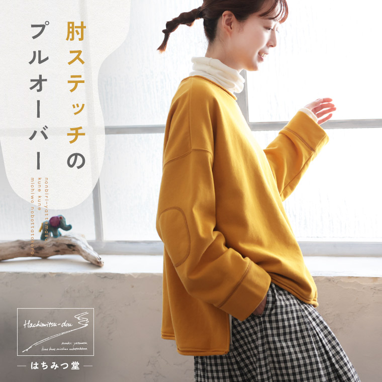 【今なら半額!】はちみつ堂 肘ステッチのプルオーバー レディース スウェット スエット 裏毛 長袖 クルーネック 肘パッチ トップス/お客様都合での返品交換不可
