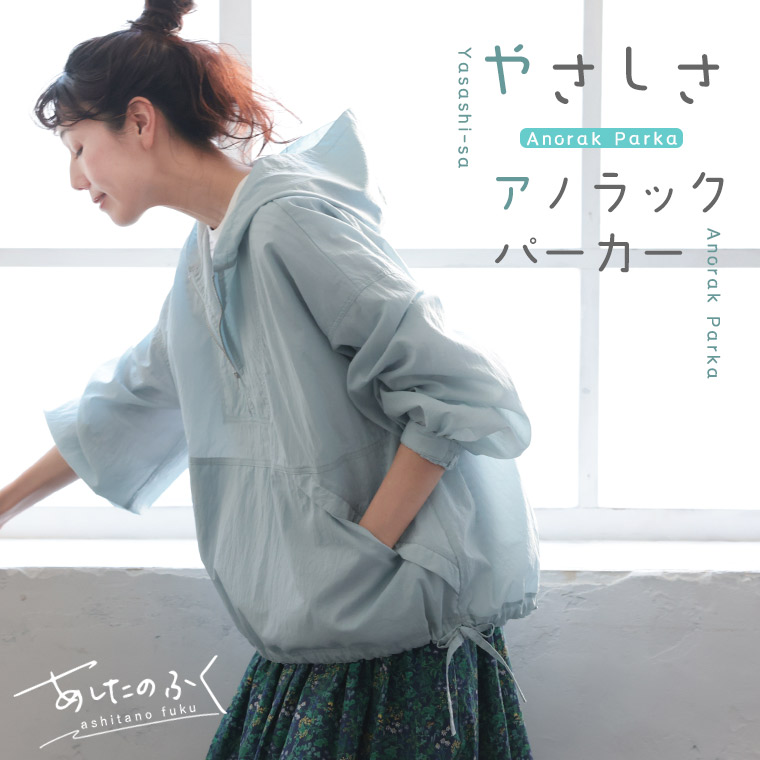 あしたのふく やさしさアノラックパーカー レディース ライトアウター プルオーバー ブルゾン ハーフジップ フード付き 長袖 ナイロン トップス