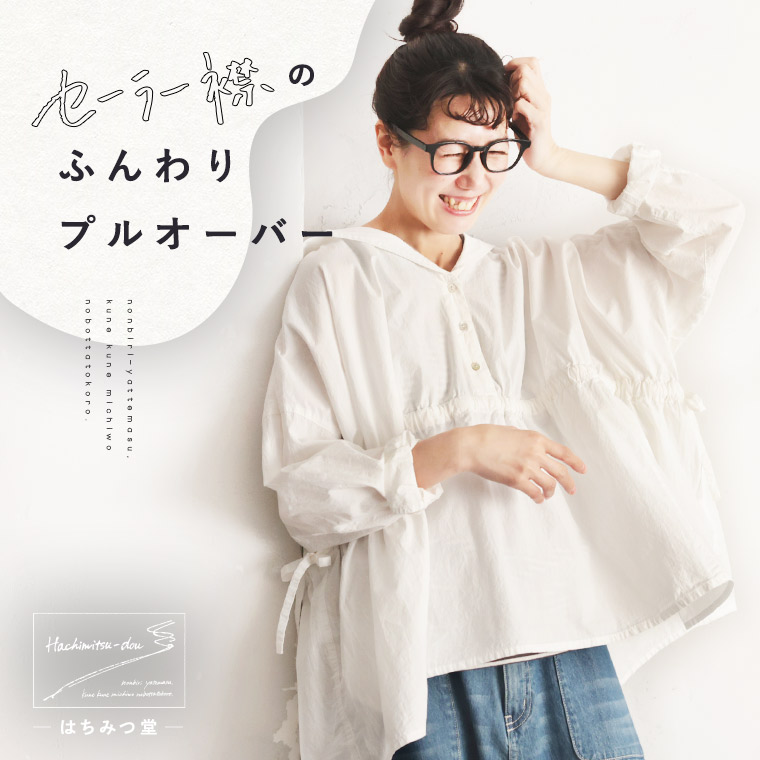 はちみつ堂 セーラー襟のふんわりプルオーバー レディース ブラウス シャツ 長袖 スキッパー風 Aライン フレア 綿 コットン トップス