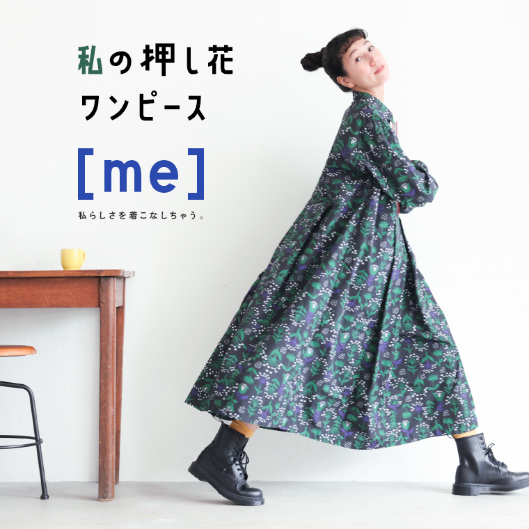 【ついに再入荷!】[me] 私の押し花ワンピース レディース シャツワンピース ロング フレア Aライン 長袖 綿 コットン 花柄 北欧風