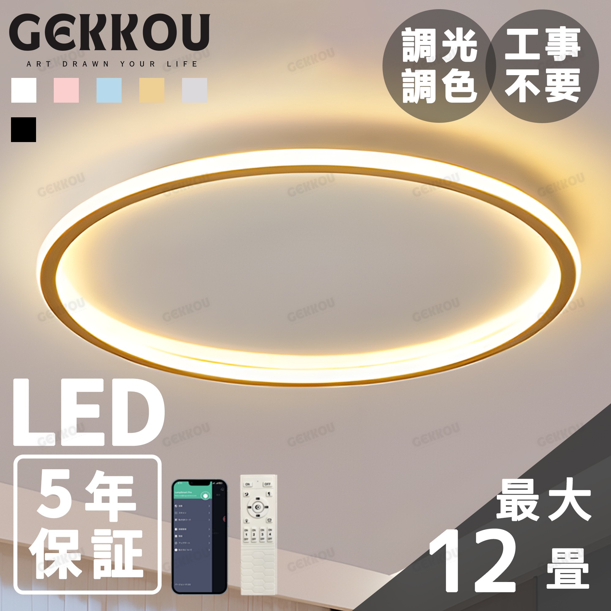 GEKKOU シーリングライト リビング 照明 LED おしゃれ 北欧 明るい 調光調色 2畳 4畳 6畳 8畳 10畳12畳 14畳 天井照明 照明器具 リビング 洋室 スマホ制御