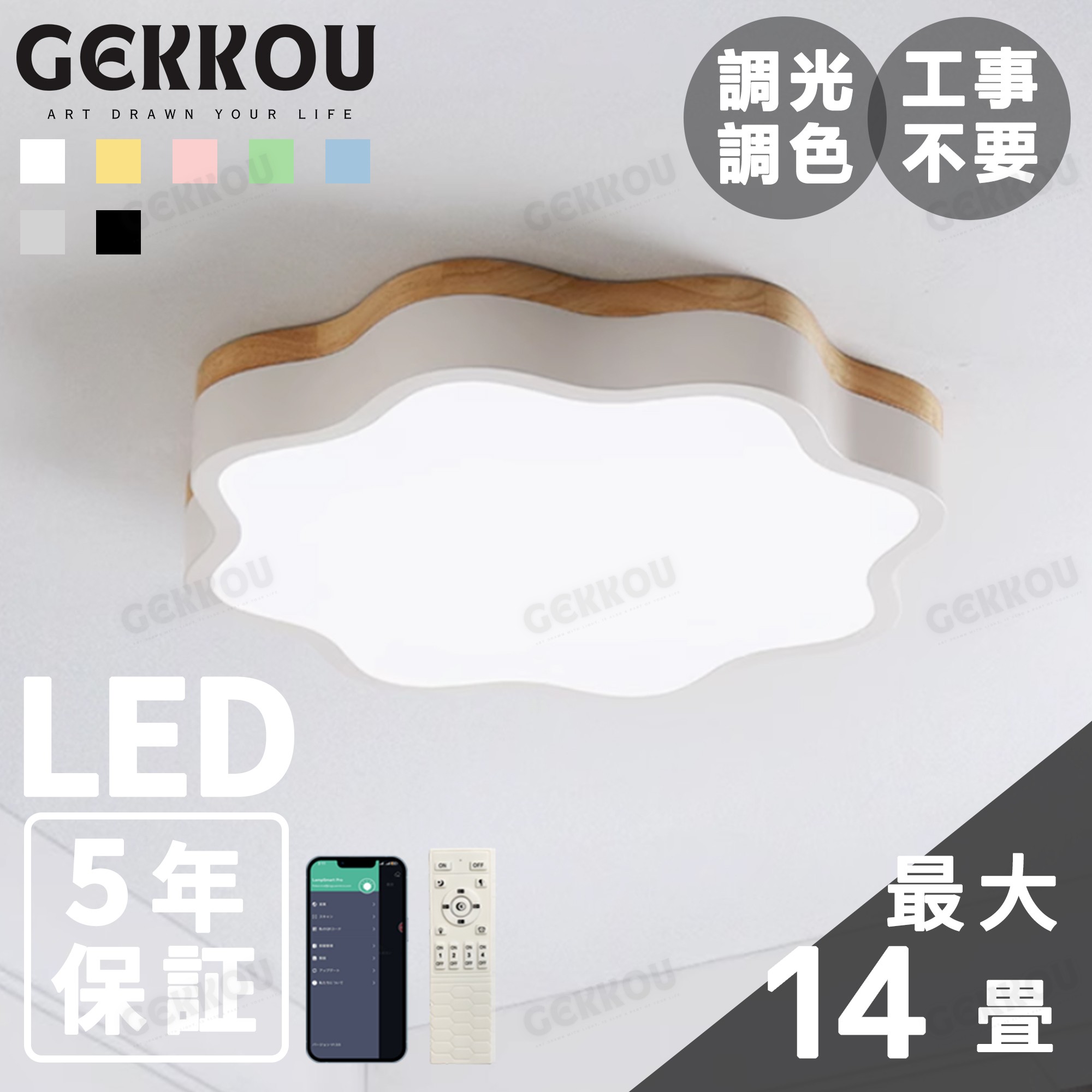 GEKKOU シーリングライト リビング 照明 LED おしゃれ 北欧 明るい 調光調色 2畳 4畳 6畳 8畳 10畳12畳 14畳 天井照明 照明器具 リビング 洋室 スマホ制御