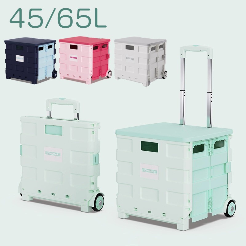 アウトドア用キャリーカート ショッピングカート コンテナキャリー 折り畳み 収納ケース 衣装ケース キャリーカート 座れる ストッパー 大容量65L ボックス