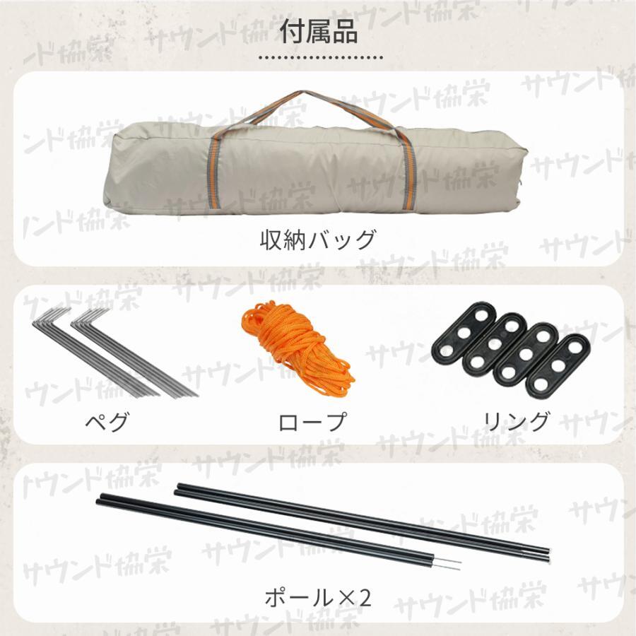 セット内容:ワンタッチテントX1、ペグX10、ロープX6、収納袋X1、キャノピーポールX2、天窓カバーX1