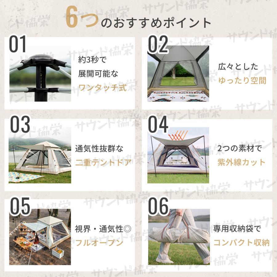 ワンタッチテント テント キャンプ キャンプテント ドーム型テント キャノピーテント 大型 3~5人用 おしゃれ UVカット フルクローズ 簡単 日よけ キャンプ用品