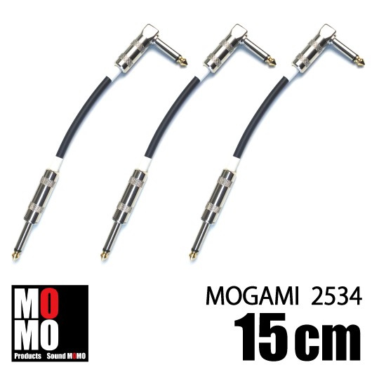 モガミ 【 MOGAMI 2534 】黒 15cm L-S型 ギターパッチケーブル(シールド)3本セット