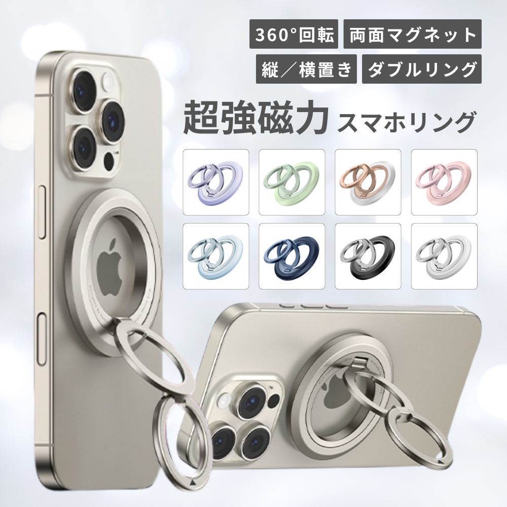 スマホリング 360°回転 SYNCWIRE MagSafe対応 マグセーフ用デュアルリング 薄型バンカーリング 携帯リング 指かけダブルリング 超強力磁石両面マグネット